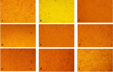 图: 不同稀释浓度支原体对BHK21细胞培养的影响(A: 阴性对照; B ~ I: 10-1, 10-2, 10-3, 10-4, 10-5, 10-6, 10-7, 10-8)【2】