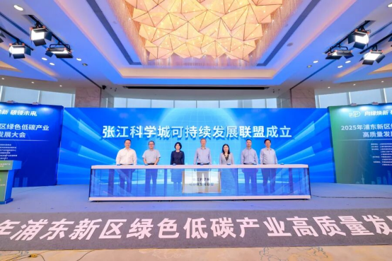 本次大会立足“十四五”收官与“十五五”谋划的关键节点,旨在深入践行“跨界、融合”的产业生态观,汇聚政府、学界、金融及产业界的多方智慧,共同擘画浦东绿色低碳产业高质量发展的技术路线与实施路径。在大会的仪式环节,“张江科学城可持续发展联盟”的正式揭牌成为全场焦点之一。该联盟的成立,标志着张江科学城在推动区域绿色、低碳、可持续发展方面迈出了协同作战的关键一步,将为园区内企业提供一个集技术交流、成果转化、资源共享与项目合作为一体的高端平台。