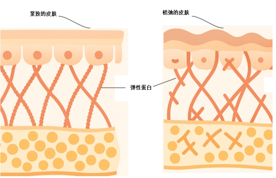 弹性蛋白作为生皮组织中弹性纤维的主要成分,在真皮蛋白中的占比达到 2%。它与胶原蛋白相互配合、协同作用,共同赋予皮肤二维弹性,成为维持皮肤紧致与弹性的关键因素。